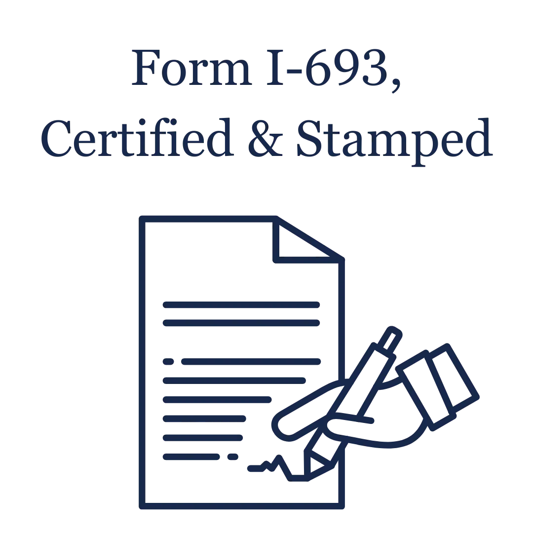 Form I-693, certified and stamped